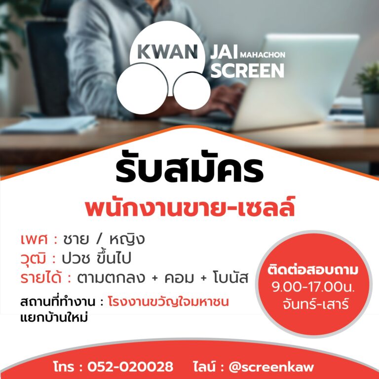 รับสมัคร ฝ่ายขาย ประจำโรงงานสกรีนแก้ว รายได้ดี มีค่าคอม สวัสดิการดี จำนวน 2 ตำแหน่ง